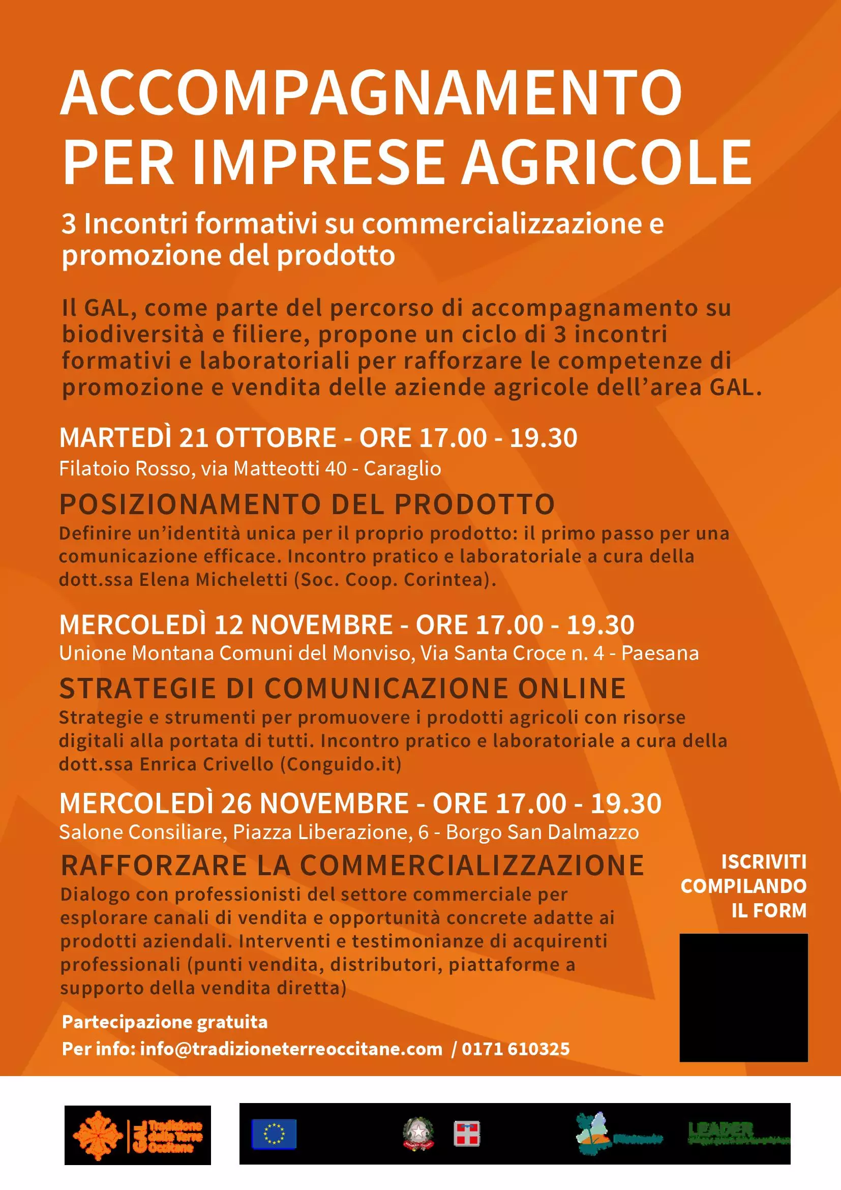 Tre incontri formativi su commercializzazione e promozione del prodotto a cura del Gal Tradizione delle Terre Occitane